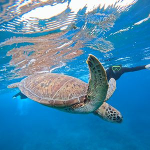 いざ海に入ってみると写真のような大きいウミガメと一緒に泳ぐことができて大満足です。