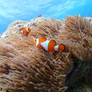 体験ダイビングでは、シュノーケリングよりも深い所で長時間海中を潜水することができ、海中に広がる熱帯魚やサンゴの景色を楽しめる他、場所によってはジンベイザメやウミガメなどの大きな水中生物にも出会えることができます。主にダイビング初心者を対象にしており、器具の取り扱い方法から潜水中の呼吸・耳抜きの方法まで、インストラクターがていねいに指導します。一部のツアーではグループ割引がありますので、友人などとご一緒にどうぞ。