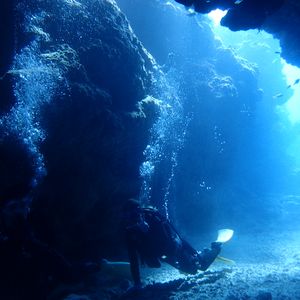 青の洞窟体験ダイビング ボートで楽々移動&高画質写真無料!餌付け体験付き♪神秘的な青の世界を満喫<1ダイブ/恩納村発>