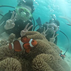 親切で聡いガイド女性の方につきっきりで全て面倒を見ていただき、安心安全、とても楽しく過ごしました。どうもありがとうございます。私はやや高齢女性1名での体験ダイビング参加ですが、予定外の2回目もトライし我ながら結構イケルかもと思い、ライセンスをとってまた参加したいです。