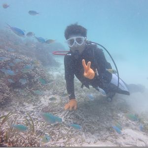 体験ダイビング1回経験済と初体験ダイビングの2人で参加しました。市街地とのダイビングと迷いましたがせっかく石垣島に来たということで手付かずの珊瑚礁が有名な北部でのダイビングにしました。インストラクターの方が丁寧に指導してくださり、体験ダイビングとはいうものの慣れてきたら自分たちで泳いで浮遊感を十二分に味わえました!気づけば約40分のダイビング1本丸々をあっという間に終えあまりの楽しさと天候にも恵まれていたので急遽2本目をその場で追加しました。2本目はより珊瑚が有名なスポットへ連れて行ってもらいました!眼下に広がるリュウキュウキッカサンゴは圧巻でした…‼︎ベルトラで申し込んだこともあり写真も無料でたくさん撮ってもらい最高の思い出ができました。ダイビング後はシャワー室でシャンプー等を済ませて近くの牛汁が有名なお店を教えてもらいました。次回はライセンスを取ってぜひマンタを見たいと思いました!