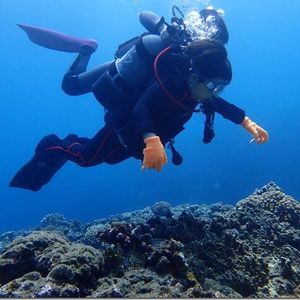 慶良間まで船で約1時間、船酔いが心配でしたが酔い止めのおかげで何とか大丈夫でした。海に潜ると少し船酔いしていたのも忘れて、とてもキレイな景色の中を泳ぐことができて感動しました!ウミガメにも遭遇できて、とても嬉しかったです。インストラクターの方のおかげで2ダイブ&シュノーケルと満喫できました。那覇市内のホテルから送迎もしてもらえて、とてもいい体験になりました。写真もメールにたくさん送って頂きありがとうございました。