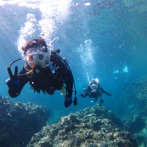 まず最初に、体験ダイビング(青の洞窟)をしました。インストラクターの男性が非常に丁寧な説明で好印象でした。またダイビング初体験の彼女に対して、不安がなくなるように、しっかり接していただけたことも非常に助かりました。念願の青の洞窟に入ってからは、手を引いてくださり、2人で楽しむことが出来ました。写真もしっかり取れていました。一眼などの綺麗な写真であれば、もっと嬉しかったです。海中で魚にエサをやった際には、多くの魚に囲まれ、非常に感動的な体験が出来ました。