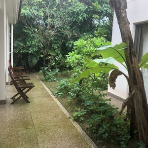 エントランスから、隠れ家感たっぷりで、セミの鳴き声に迎えられながら美塩さんへ。