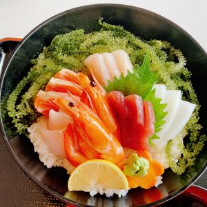 ランチは海ぶどうをたくさん食べたくて海鮮丼を選択。正直美味しいのは肉の方です。パパイヤ?の漬物も食べられた。