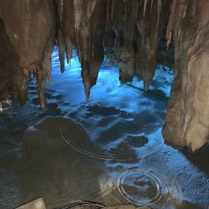一方広い鍾乳洞は、撮影に使われた場所や、さまざまなイルミネーションで楽しめます。自然の不思議です。エイサーショウも見事でした。