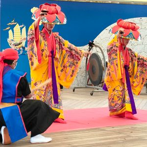 沖縄ワールドは2回目だったので、ツアーの時間内で民俗衣装の変身写真にもチャレンジしました。