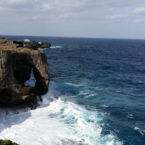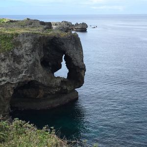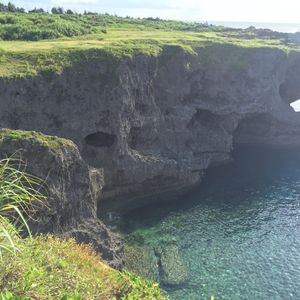 万座毛はとても風が強いです。私が参加した日は暴風雨で観光どころではありませんでした。