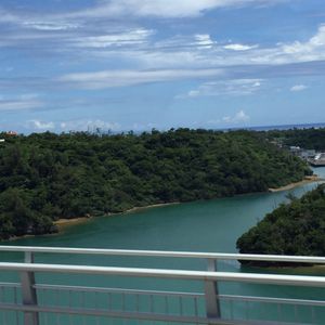 沖縄は36年前の記念すべき新婚旅行の地、今回はかねてより行きたいと思っていた古宇利島大橋や美ら海水族館、美浜アメリカンビレッジと三点そろったコースに参加することができました。バスは那覇市内のピックアップ場所を巡り約40名が乗車、なんと5か国の言葉が飛び交うにぎやかなツアーに。ガイドは8か国語対応のイヤフォンを通しての対応、なんともハイテクになったものです。さて、バスは一時間半ほどで古宇利大橋を渡り渡島、浜辺から見る大橋と青い海の見事な景観はやはり予想通りの素晴らしいものでした。次は妻が大変期待していた美ら海水族館へ、まずは上演時間の都合で「おきちゃん劇場」でイルカたちのかわいい演技に魅了され、その後水族館内部では巨大ジンベイザメが優雅に泳ぐ大水槽の迫力に圧倒されました。滞在時間も三時間とゆっくり見学できたのがさらに良かった。最後は美浜アメリカンビレッジでアメリカンテーストに染まりながら、ここも約二時間半の時間を有効に使って食事やショッピング、ランドマークの観覧車まで楽しむことができました。海外から参加される方には時間にルーズな方もおられると聞いていましたが、今回はそういったこともなくスムーズなスケジュールの進行でさらにいいツアーとなりました。