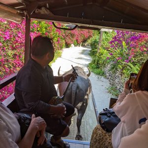 その後竹富島までクルーズし、牛車観光へ。牛車に乗った後はキッチンカーでビールを買って、飲みながら歩いて港へ戻りました。途中ヤギや馬を見たりと、のどかな道を10分くらいかけてビール片手に歩いたのが楽しかったです。