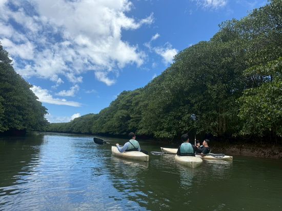 午前はマングローブの中をカヤックで進み、滝までトレッキング。滝つぼでは飛び込みをしたり、ガイドの方にパイナップルをいただいたりなどのんびり過ごすことができました。