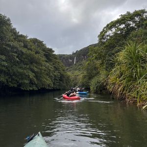 1人を陀いお皆初心者でカヌヌ挕ぎ挕ぎトレッキングぞ、途䞭70代の2名が離脱しお䌑憩ずいうこずになりたしたが、残りのメンバヌで滝壺に到着し飛び蟌みしお楜しみたしたお腹ペコペコで食べたおにぎりず唐揚げは最高でしたガむドの方のお喋りもずおも楜しかったです。翌日からの筋肉痛は蟛かったですが皆さんたた䜓力付けおリベンゞしたいず宣蚀しおいたす