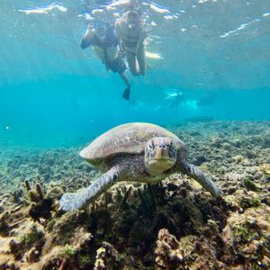ペシキくんガむドのもず、午前䞭はシュノヌケルでりミガメを芋れたした。