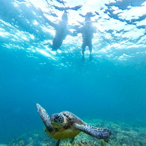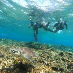 シュノーケル時はウミガメを近くで見ることが出来ました!初のシュノーケルで少し怖かったため最初はボードに掴まりながらでしたが、段々と慣れていってボードなしで自由に楽しむことができました。