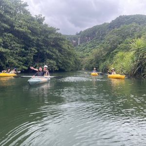 自分60才と子供達23歳から32歳の5人家族で参加しました。1日中楽しめて、ランチは琉球そばをご馳走になりました。午前中はカヌーで腕が疲れたけど滝つぼに飛び込んでヒーリング。午後は海でカメさんを観察。天気もよく非日常を楽しむことができました。