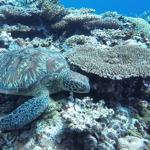 余りにも水が澄んでいて可愛いアオウミガメにも美しすぎるシャコ貝やニモにもナマコ(笑)にも会えて、珊瑚もキレイで、気持ち良くて幸せすぎました。