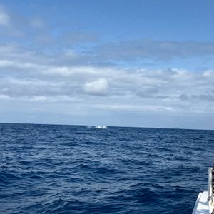くじらスポットで待っていると、遠くにくじらがしおをふいてるのが見えました。他にも3艘の船が集まっていて、まわりを囲っている感じでした。そこから何度か移動して、しおをふいているところは何度かみることができました。ほかの船はもう帰ってしまい、あと一回見たら帰ります、と言われたあと、すごく近くの水面下にくじらがいるところに移動してくれて、しばらく待っていたら大きくうねって尾びれを見せてくれました!感動でした!最後までねばってくれてとてもよい経験ができました。ありがとうございます!