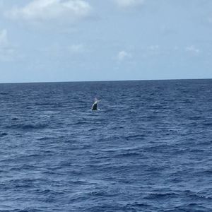 はじめてのホエールウォッチングでしたが感動しました。ホエールウォッチングのため、何隻もの船がクジラを待っている中、期待に応えてくれて何度も水面に出てきて、ブロー、フルークを繰り返してくれました。さらに、見れるのがレアなブリーチは3回もしてくれました。最後には、3頭のクジラが、横に並んで泳いでサヨナラしました。とても感動しました。沖縄の旅行のなかで、1番の印象に残り、いい思い出のひとコマになりました。