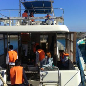 åããŠã®ããšãŒã«ãŠã©ããã³ã°ã§ããã倩æ°ãæªãã£ãã®ã§ãæµ·ã¯èããè¹ãããªãæºãããšèšãã®ã§è¹é ããå¿é ãããŸããããè¹é·ãããäºåã«è²ã 説æããŠäžãããå®å¿ããŠè¹ã«ä¹ããããŸãããã¯ãžã©ãèŠããã€ã³ããŸã§ã®è¹ãã¢ãã©ã¯ã·ã§ã³ã®ããã§æ¥œããã£ãã§ãããšã³ãžã³ã®é³ãæ¢ãŸã£ãããã芪åã¯ãžã©ããããããšæããŠäžãããããèŠã€ããã®ãããšé©ããŸãããæåŸ ããŠããããã¬ããã®ãããªè¿«åã®ããå§¿ã¯èŠãããŸããã§ããããæ°ååŸã«èäžãå°»å°Ÿãæµ·é¢ããèŠãã®ãã³ããšæ³³ã芪åã¯ãžã©ãèŠãããšãåºæ¥ãŸããã