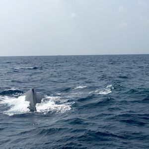今回主人に鯨のダイナミックな姿を見せてあげたいと思い参加しました。自然との向き合いなので仕方ないなと思いますが、噴気だけ2.3回尾が遠くにすこし見えただけでとても残念でした!おまけに帰り時間が押していて船のスピードが激しすぎました。波にあたって水しぶきはあるわ、揺れが激しかった為あちらこちらから、酔われて吐かれてました。汚物が前の方にかかったりして見るのも耐え難い船上でした。なんとか見させてあげようというスタッフさんの気持ちはわかりますが、吐いて辛かったという気持ちが残ってしまうよりは、見えなかった残念の気持ちが残った方が良かったのかな?と私は思いました。船上での光景しかのこりませんでした!大きなクジラの体が見たかったです!今度また機会があったらリベンジしたいなあと思っています。
