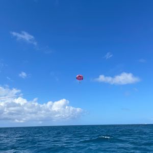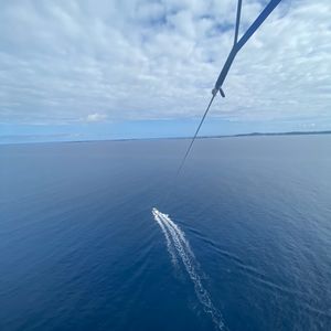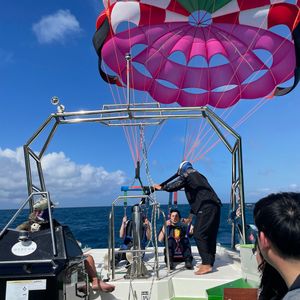 150メートルのパラセーリングをしました。飛ぶまではドキドキでしたが、緊張和らげるように話しかけてくださって楽しめました。空からの景色も最高で、思い出になりました!