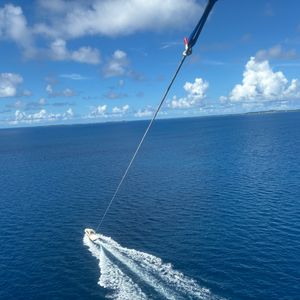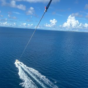 初めての宮古島で台風の影響で前日から風、波も高くパラセーリングが出来るかな?って不安でしたが、当日はスッキリ晴れて無事に飛ぶことが出来ました。人生初でしたが、スタッフの方が丁寧に指導して下さり安心して飛べました。初めてで動画、写真を撮る余裕がなかったですが、今度来た時はチャレンジします。