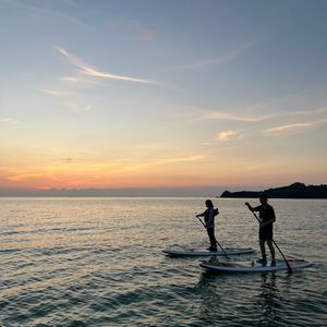 6æäžæ¬é ãå人ãšãµã³ã»ããã¯ãªã¢supããããŠããã ããŸããïŒæ¥ãèœã¡ãæé垯ã«ããããŸããã18:30ãšé ãã®æéã ã£ãã®ã§çŸå°éåã§ãããäœè£ãæã¡è¡ãããšãã§ããŸããïŒã€ã³ã¹ãã©ã¯ã¿ãŒã®æ¹ãæ°ãããªæ¹ã§ãããããã®åçã®æ®ãæ¹ãæããŠãã ãã£ããããªã«ããåçãæ®ãã®ãäžæãããã®ã§ãæ è¡ã®æãåºã«ãã£ãŠããã®äœéšã§ããããŸããsupã«åº§ã£ãŠæµ·ãçºãããªã©ããã£ãããšãããã«ã¿ã€ã ãéãããã®ã§ãååäžã¢ã¯ãã£ããã£ãŒãããããšã§ãç¡çãªãã§ãããªãšæããŸããïŒãµã³ã»ããsupãµã€ã³ãŒã§ãïŒ