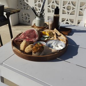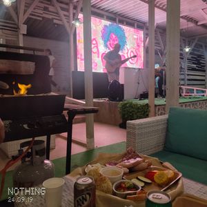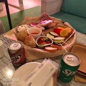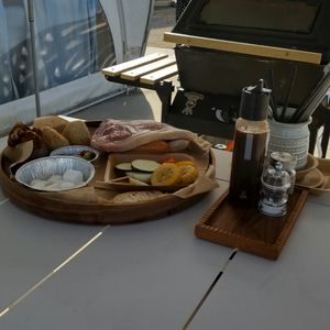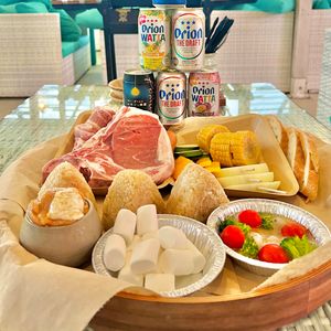 泊まってる方なら、お酒飲みながらゆったりできていいと思いました。ボーンステーキは見た目よりかなり柔らかく、豚肉も甘みがあり、焼きおにぎりに合いました。私は、アヒージョの味がしっかりとしていて、かなり好みでした。マシュマロはデザート感覚で、バゲットに乗せて、最後いただきました。
