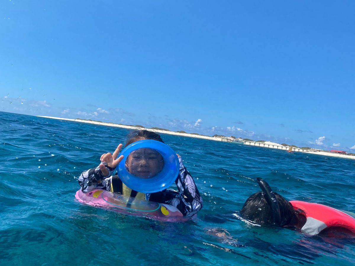 3歳の子は1000円でレンタルできるシュノーケリングボードで水中のお魚を夢中で見ていました!これはお借りして大正解でした~2歳くらいから楽しめそうです。ジェットスキーに引っ張られるマーブルは3歳の子も出来ました。途中怖かったようですが楽しかったようです。(翌日もメンバーを変え、夫と子ども2人と参加しました笑)マーブルもまた乗っていました笑