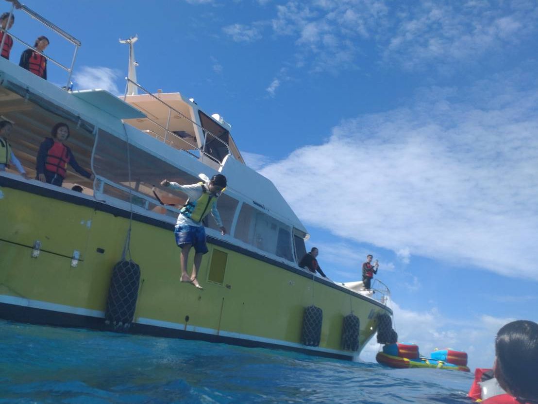 パラセーリング付きのボートで遊べる午前ツアーに参加希望していたが、梅雨という事もありツアーが決行されるか?が分からない状況だった。数日前に午後ツアーなら結構決定と連絡を頂けて、ツアー時間を変更。