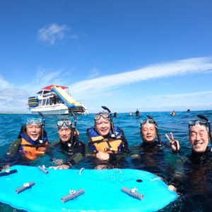 このツアーに参加される方は酔い止め薬を飲むことをお勧めします。家族4人全員服用し参加したのですが一人が船酔いで少し苦労しました。他の参加者の中で意外と若い子たちも船酔いで遊べずこんな素晴らしい沖縄海を見れず帰るなんて勿体ない!