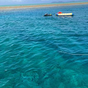 天候不良のため生憎水納島には上陸できずゴリラチョップでのシュノーケリング&マリンスポーツでしたが大満足でした。数日前から天気が怪しかったため、催行有無は当日行ってみないとわからないのかな…と思っていたところ、前日に水納島に行けないことが決定した旨電話をいただき、場所変更に伴う参加意向確認を丁寧にしていただきました。島に行くことはできませんでしたが、ゴリラチョップでのシュノーケリングは綺麗な魚や珊瑚を沢山見ることができ、参加してよかったと思いました。マリンスポーツも初めてハーフパイプにチャレンジしましたがジェットコースター気分でかなり楽しめました!翌日はスタッフの方に予告していただいた通り筋肉痛になりましたがそれも良い想い出になりました。水納島に行く際にはまたこちらのツアーを利用させていただきます!