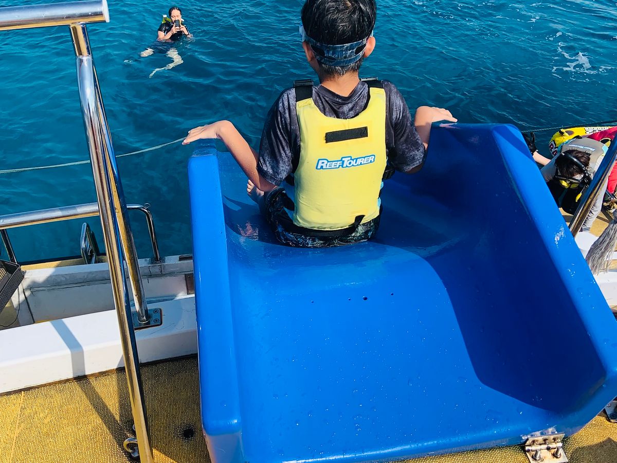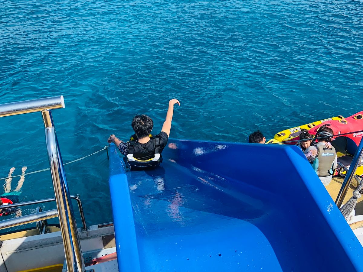 滑り台にジャンプ台にブランコも楽しすぎでした!!見せてあげたかった綺麗な海を見せる事ができて、体験させてあげることができて嬉しかったです^ - ^また沖縄に行く機会があったらまたこちらのツアーを申し込みたいです。