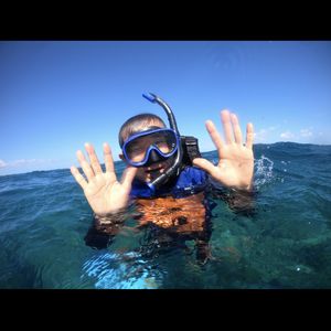 まだシュノーケルで潜る事はできませんが綺麗な海のお魚達を見たので10歳になったらダイビングを私達としたいと言ってくれていました。中学生の孫とダイビングはしていますが7歳の孫とダイビングを早くしたいです。又夢が1つ増えました。あんな小さな子達がシュノーケルとライフジャケットで一人で泳ぐ光景は最高の思い出になりましたありがとうございました。
