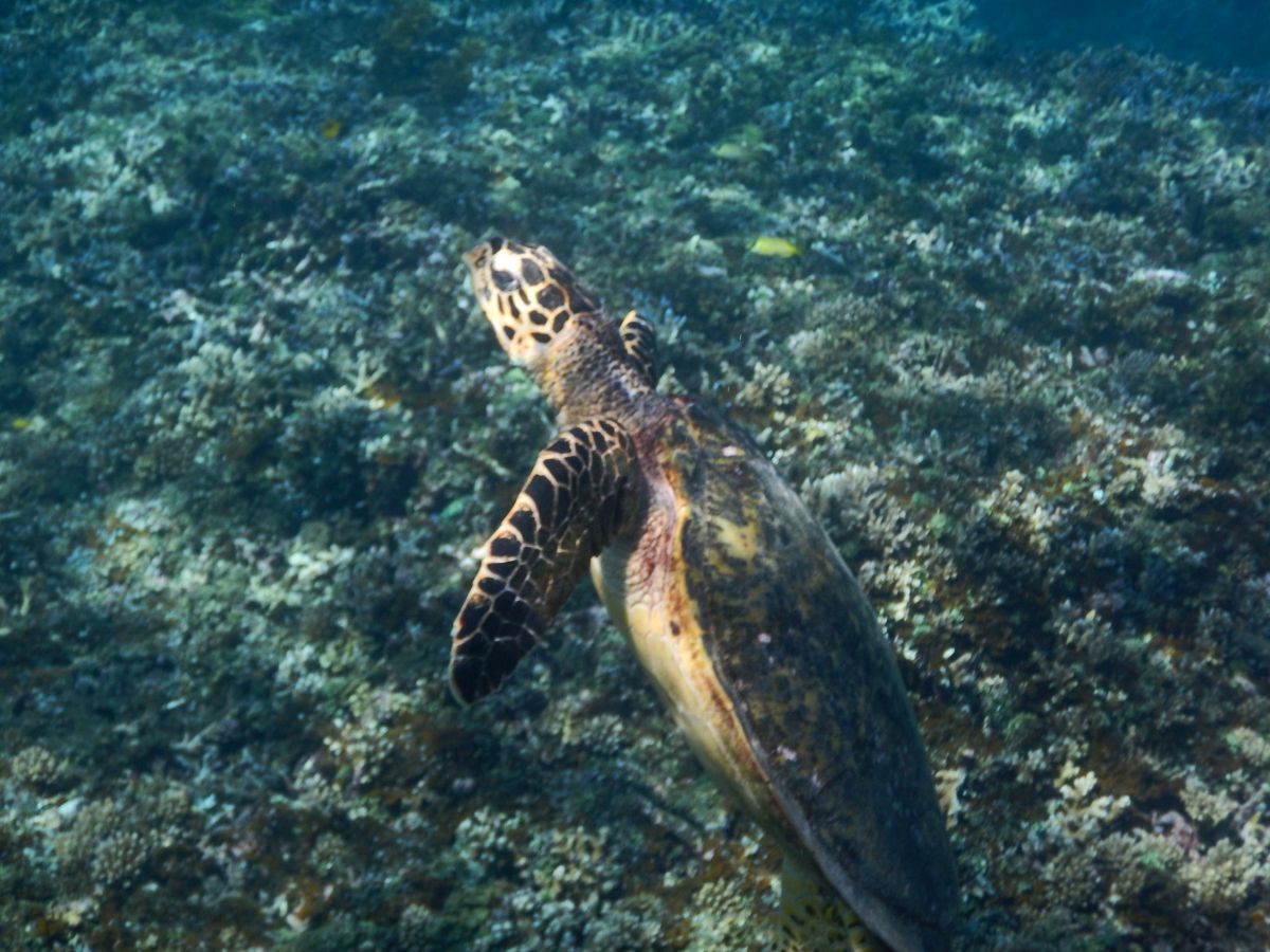 あいにくの曇り空とはなってしまいましたが、綺麗な珊瑚やたくさんのお魚たちに囲まれ