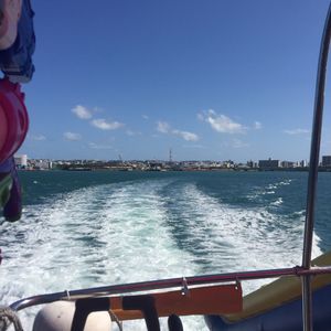 沖縄旅行に家族で来たのに、緊急事態で海で泳げず、ホテルのスタッフにマリンスポーツなら大丈夫と教えてもらい慌てて携帯で調べて前日に予約しました。スタッフの方の対応も良く、お客さんが安全に出来るように常に見ていただき、とても良かったです。船に付いてる滑り台、ジャンプ台も怖いけど楽しくて家族で何回も楽しみました。