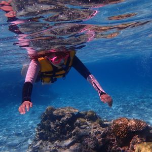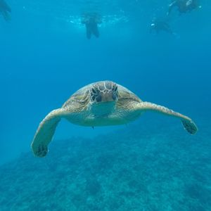 水も透き通っていて、海底のサンゴもお魚も綺麗に見えます!ラッキーなことに亀さんにも会えましたよ!