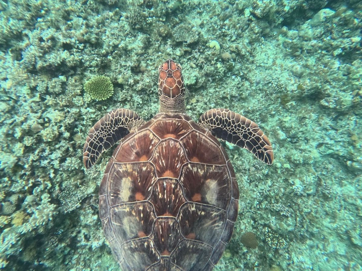 泳ぎ疲れて休んでいたらスタッフの方が海亀を見つけたらしく急遽バナナボートを出してくれて皆を連れて行ってくれました。残念ながら何処か逃げてしまいましたがスタッフさんの気遣いに感謝感謝です。