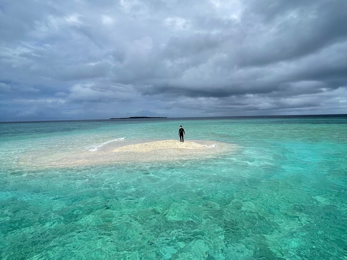 大きなダイビングポートで気持ちよく30分ほどクルージング。慶良間諸島の本島から近いチービシと呼ばれるエリアのナガンヌ島まで行きました。運良く海も穏やかで透明度は期待以上!どこまでも透き通っていて、魚もいっぱい。かわいい魚が触れそうな距離まで近づいてきます。