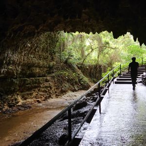 鍾乳洞のカフェで集合します。炎が付いたランタンを持って薄暗い洞窟へ入ったり、ツリーハウスへ登ったり普段できないドキドキした体験が出来ます。ガイドさんの案内もエンターテインメント感があり、お値段高いかな。と思っていましたが納得です!激しく大変な道はありません。さんぴん茶も頂けます。是非ツアーへ参加してみてください。
