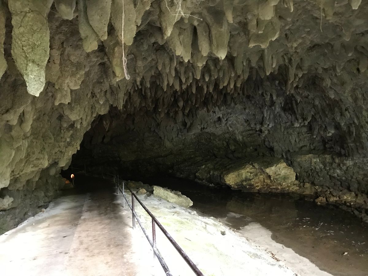 この場所はかつては海の下で、サンゴ礁が石灰岩になって、雨水で溶け、鍾乳洞になったのがよくわかります。