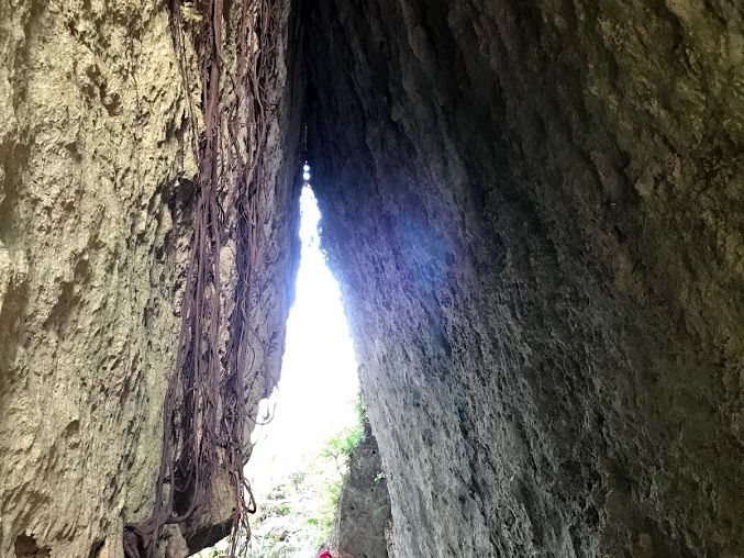 駐車場から「ガンガラーの谷」の看板を矢印の先に進むと、見えてくる洞窟の入り口にワクワク感満載‼️中は本当に自然が織りなす木々と洞窟の壁の抜け方が何百年か前を想像させる神秘的な世界でした。ガイドさんの解説も丁寧で好感度高いです。