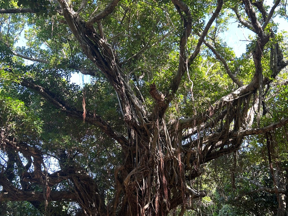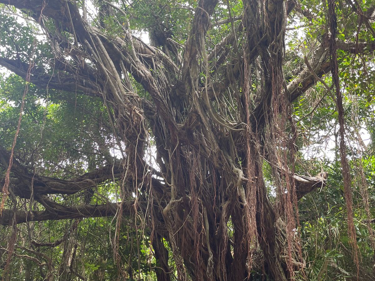 斎場御嶽では入口で手を合わせてご挨拶して中へ入り、ガイドさんの説明を聞きながら、6つある拝所を1つずつ見学しました。奥へ進むにつれて、周りは亜熱帯の密林の風景になり、暑かった外界から隔絶されて、涼しく感じるほどの聖域らしい空気と静けさがありました。