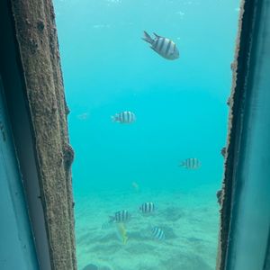 ただ、入り口から海中の見るところが別館となっており、少しだけ歩きます。屋根があったら助かりますが、外なので、少し濡れます。無料で使える傘もありますが、海風が強く、逆にささないほうがいいくらいでした。