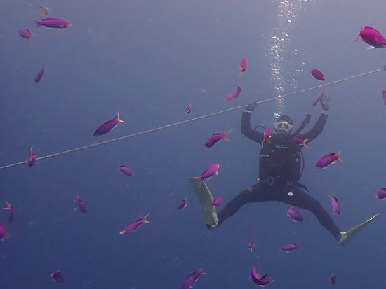 水中をフワ〜と浮いてる感覚はダイビングをしてる時ならではでとてもリラックス出来て気持ちよかったです^ ^