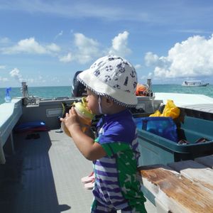 60代の両親は2回目5年ぶりのシュノーケリングでしたが、足の着く幻の島で十分な位シュノーケリングの講習を丁寧に教えていただきました。また、1歳の息子が初めての海だったので、シュノーケリングポイントに行く前の、幻の島で約30分(私たち夫婦は、講習を受けずともシュノーケリングをできるということで、講習は受けず息子と遊んでいました。)ゆっくり遊べてよかったです。