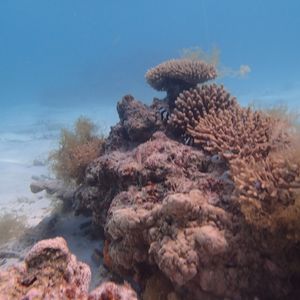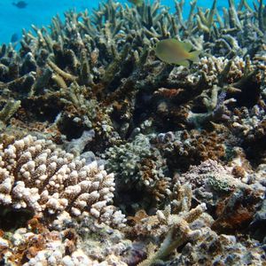 綺麗で穏やかな海、サンゴに集まるたくさんの魚。