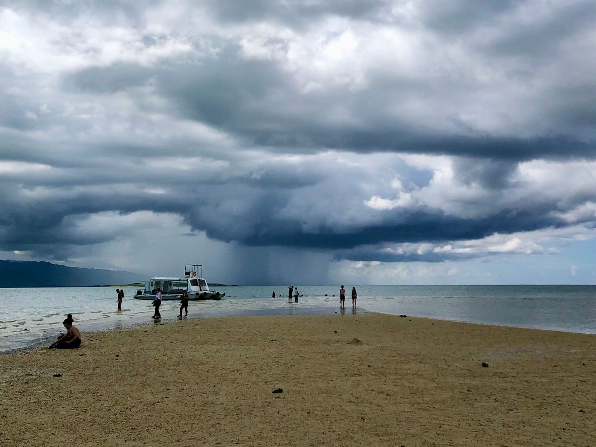 キラキラ光る波を期待して、出発時もサンサンと太陽が照り続けていたのに、幻の島の上空から西表島は厚い雲。お天気は仕方ないですが少し残念。でも、幻想的な写真も撮れ良かったです。