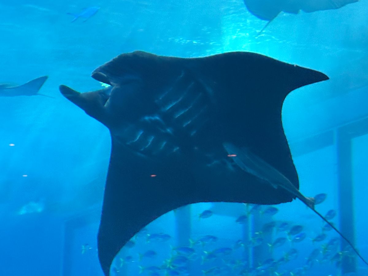 11月にここを訪れたのは初めてでしたが、いつも通りの混雑で、修学旅行なのか、学生が多くいました。外国の人も多かったです。館内の暗い場所では係員などもいなく、ベビーカーと人でいっぱいで、周りをよく確認しながら見学する必要があります。イルカのショーは本来の施設が工事中のため、屋外で行っていましたが、太陽がとても暑くて、日傘をさす人や、耐えられなくなってか、途中で席を立つ人もいました。私たちも汗をかきながら我慢して見学した感じです!大水槽での餌をあげるショーはとても見ごたえがあっていいのですが、イルカのショーと重なり、時間を有効に使えず残念でした。