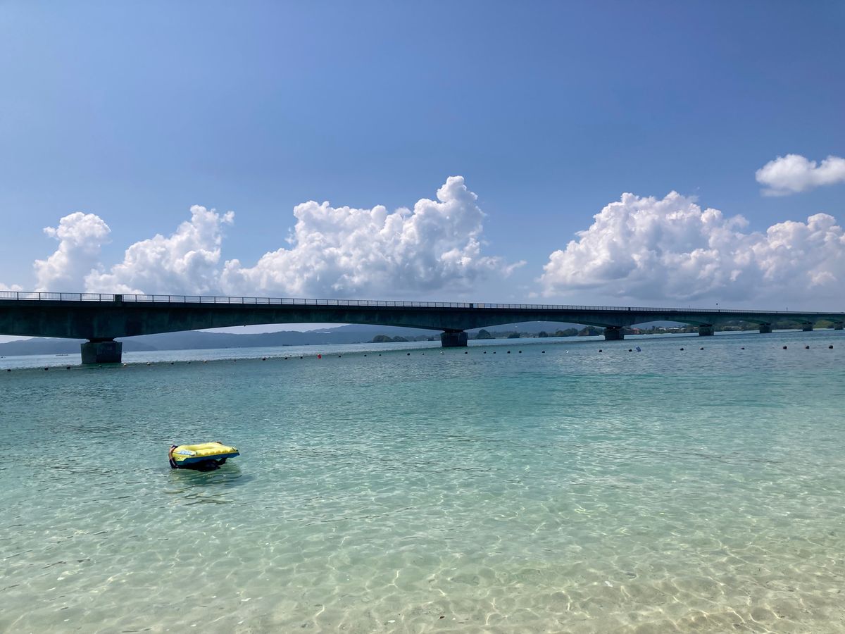 台風が来ていたので、天気は曇りでしたが、海の色に感動しました!